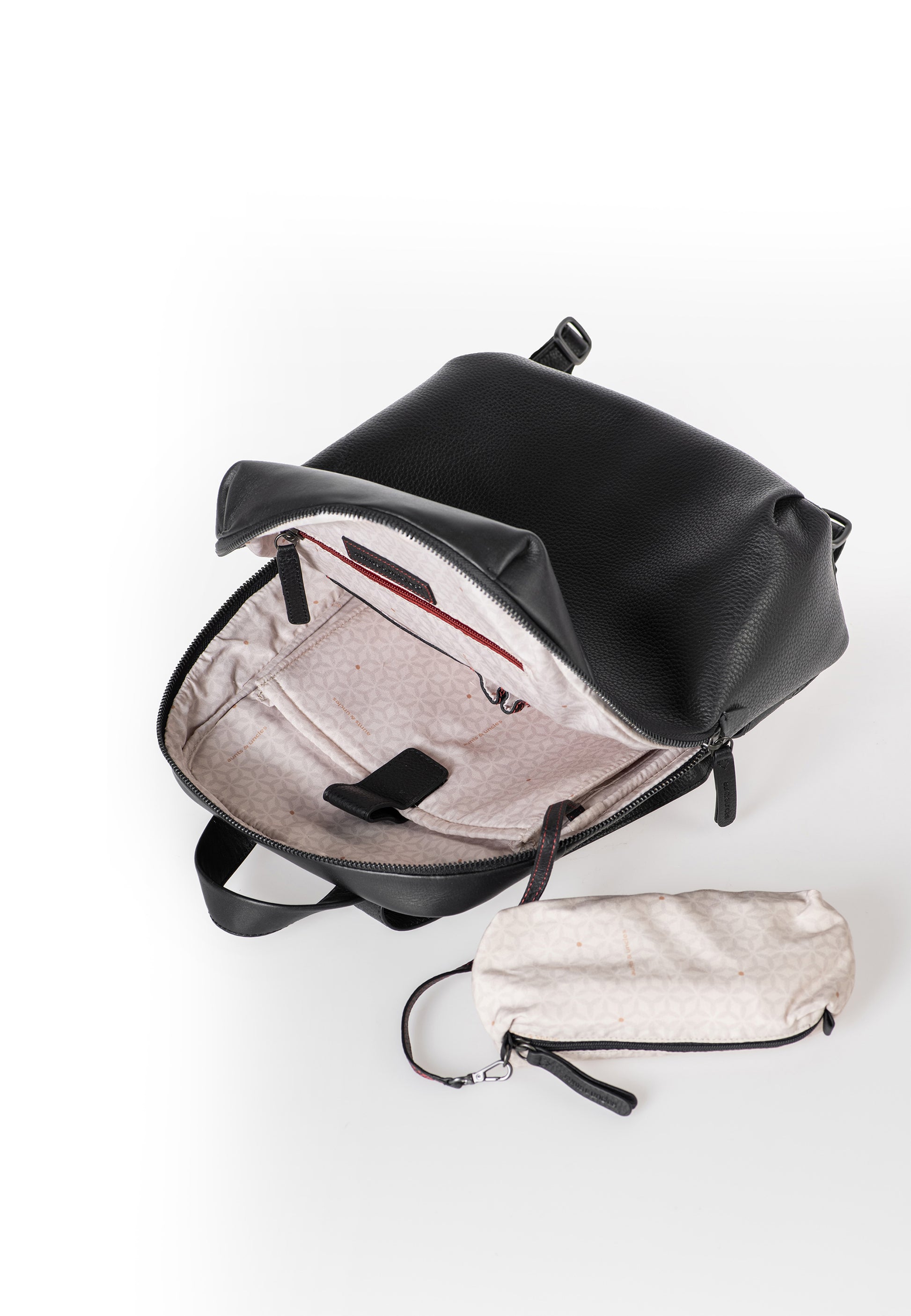 Ryggsäcken erbjuder gott om plats för allt du behöver i vardag och arbete. Invändigt hjälper flera smarta fack, ett nyckelband och ett avtagbart extraetui dig att hålla ordning. På baksidan finns ett dragkedjefack med extra säkerhetslås, perfekt för saker du vill ha nära till hands. För surfplatta eller liknande finns dessutom ett vadderat innerfack som skyddar din utrustning.