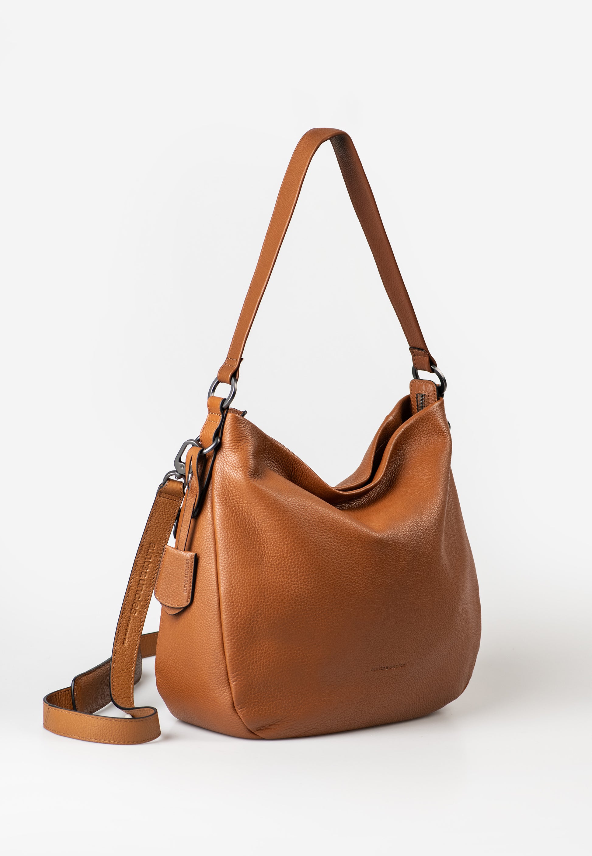 Den mjuka nappans naturliga struktur ger väskan ett unikt uttryck – elegant men ändå avslappnat. Vissa modeller i kollektionen kombinerar den fint texturerade ytan med lent, slätt läder för en subtil kontrast och ett exklusivt helhetsintryck.