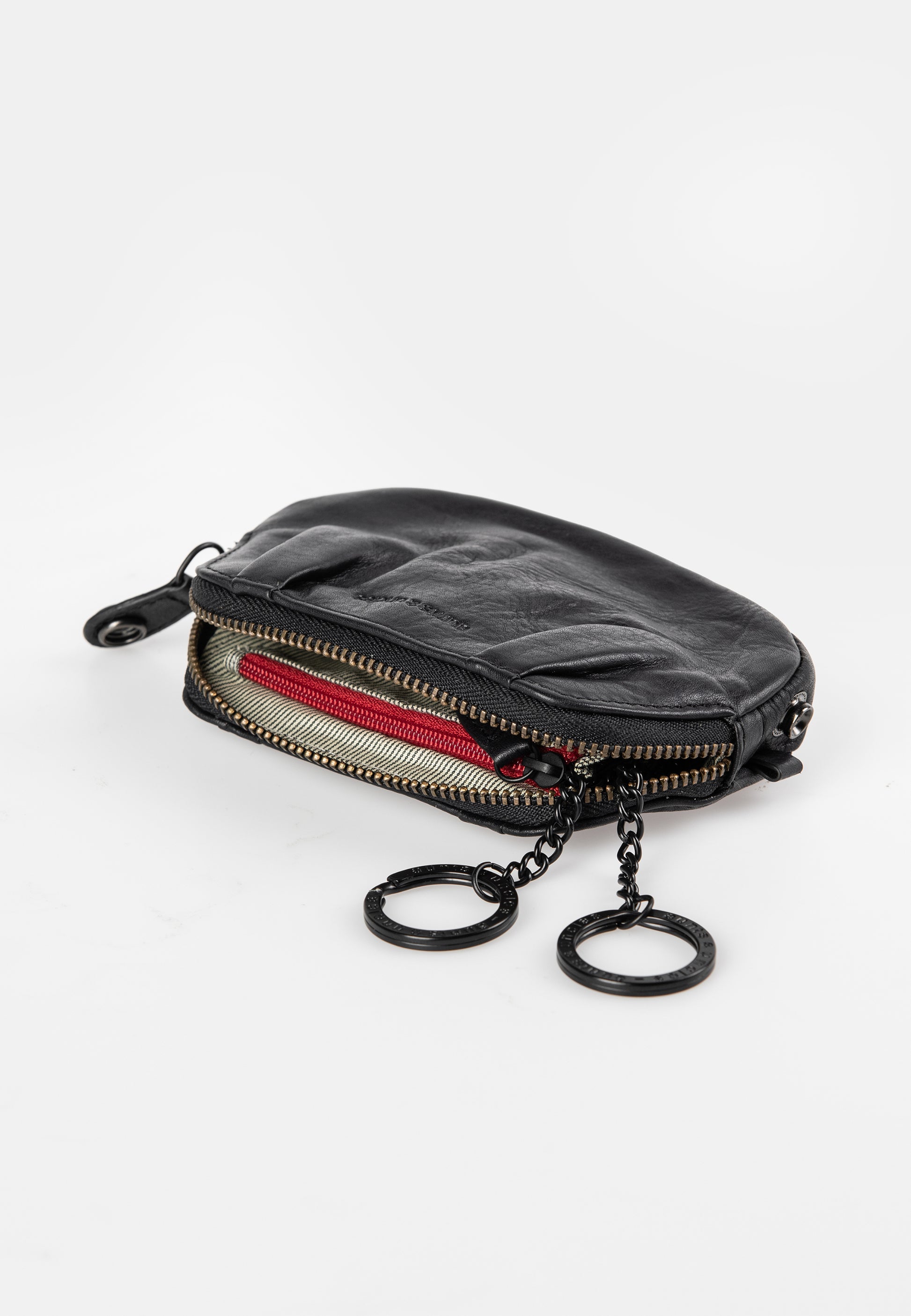Nyckeletui med dragkedja och tryckknapp som säkrar blixtlåset