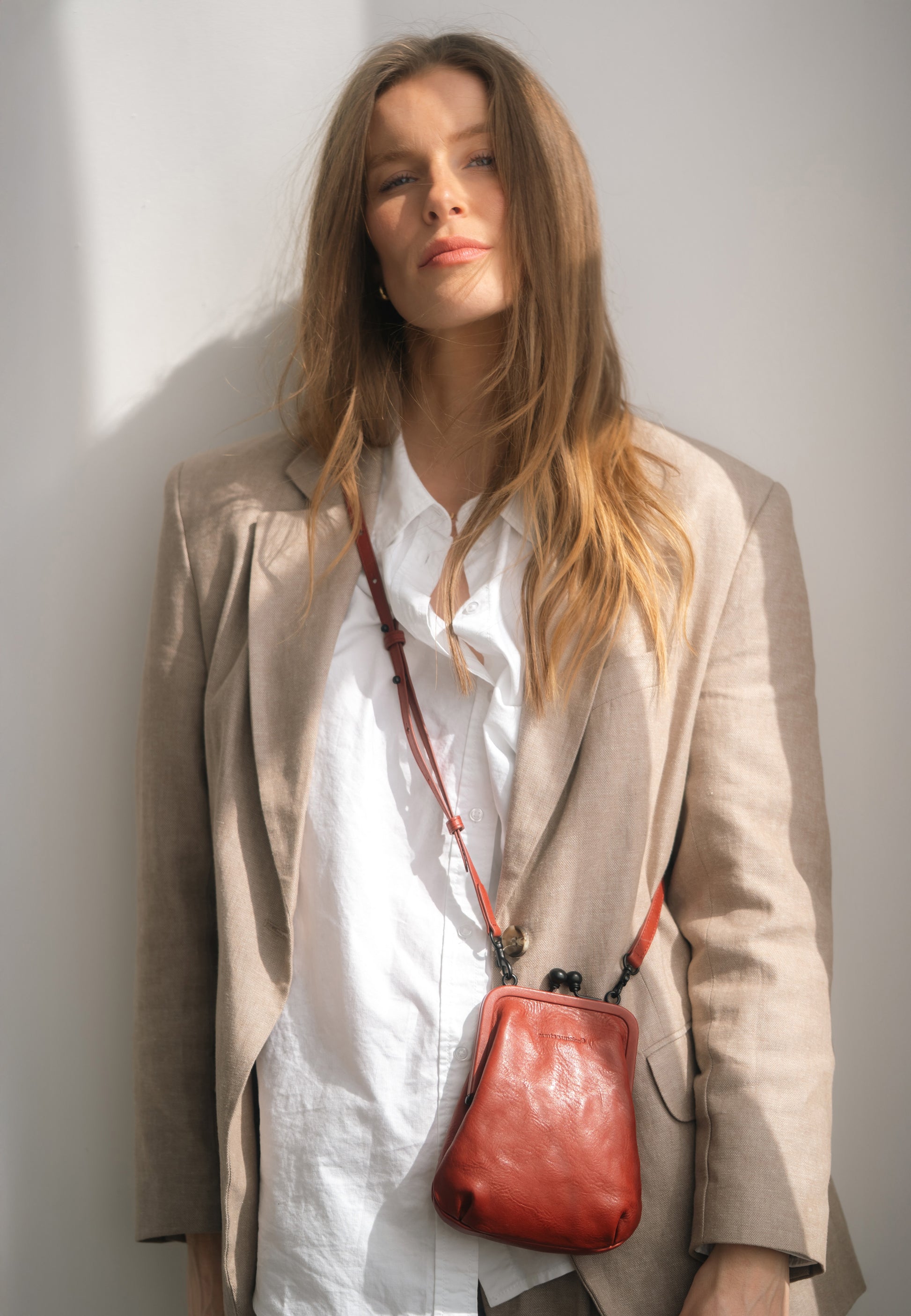 Lädret i Grandma’s Luxury Club är ett vegetabiliskt garvat anilinläder av högsta kvalitet, med en naturligt vågig struktur. De karakteristiska matta och blanka kontrasterna skapas genom omsorgsfull, manuell efterbehandling, vilket gör varje väska helt unik.