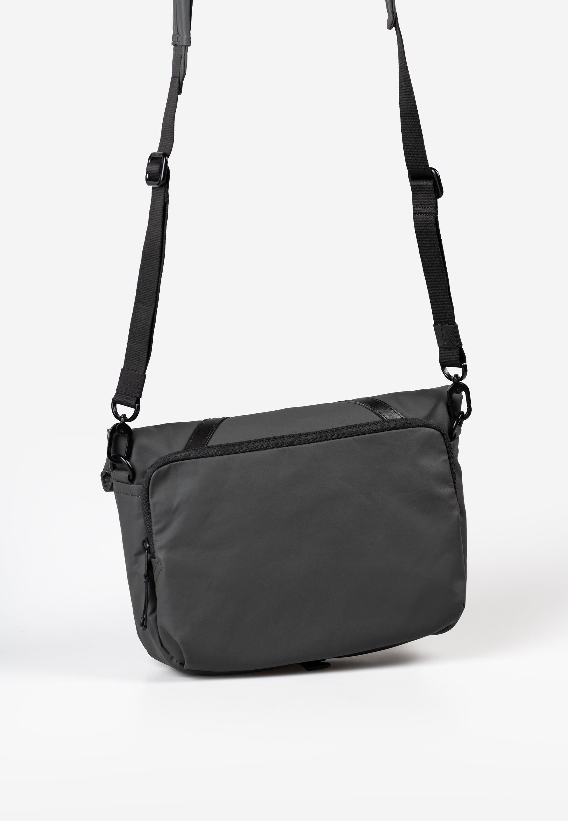 Tillverkad av återvunnet nylon, imponerar den med sin genomtänkta design och högkvalitativa detaljer. Den praktiska roll-/vikstängningen med läderflik och spänne skyddar huvudfacket, som dessutom säkras med dragkedja. Ett stort bakre fack med dragkedja runt hela ger extra förvaringsutrymme, medan invändiga fack håller ordning på dina tillhörigheter.