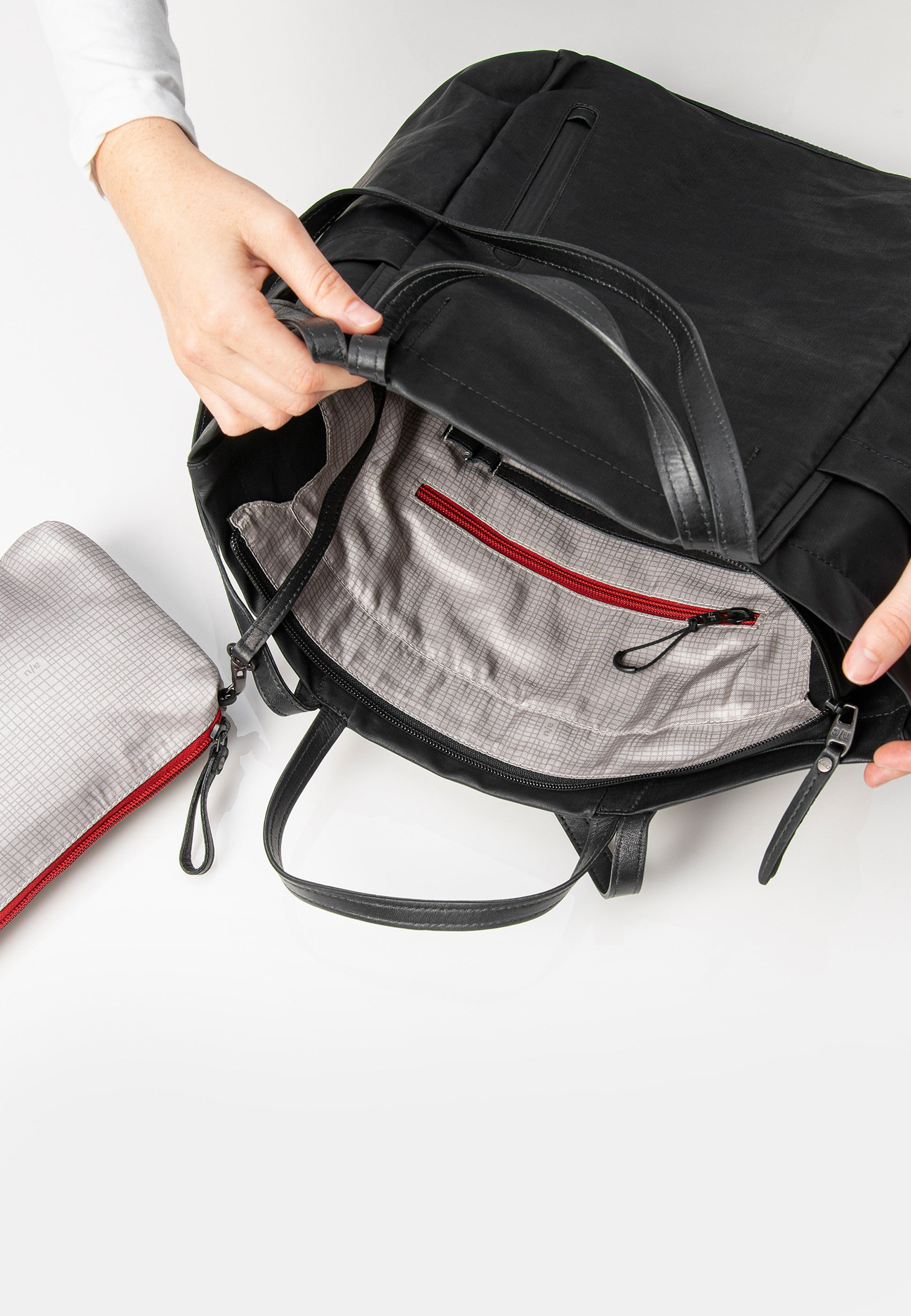 Tillverkad av vattenavvisande, belagd canvas ur Japan-kollektionen, klarar Takamatsu dagens alla utmaningar med stil. Väskan har en smart organiserad insida, en avtagbar innerficka och två stora sidofickor – perfekta för vattenflaska eller paraply. På baksidan finns dessutom ett praktiskt dragkedjefack.