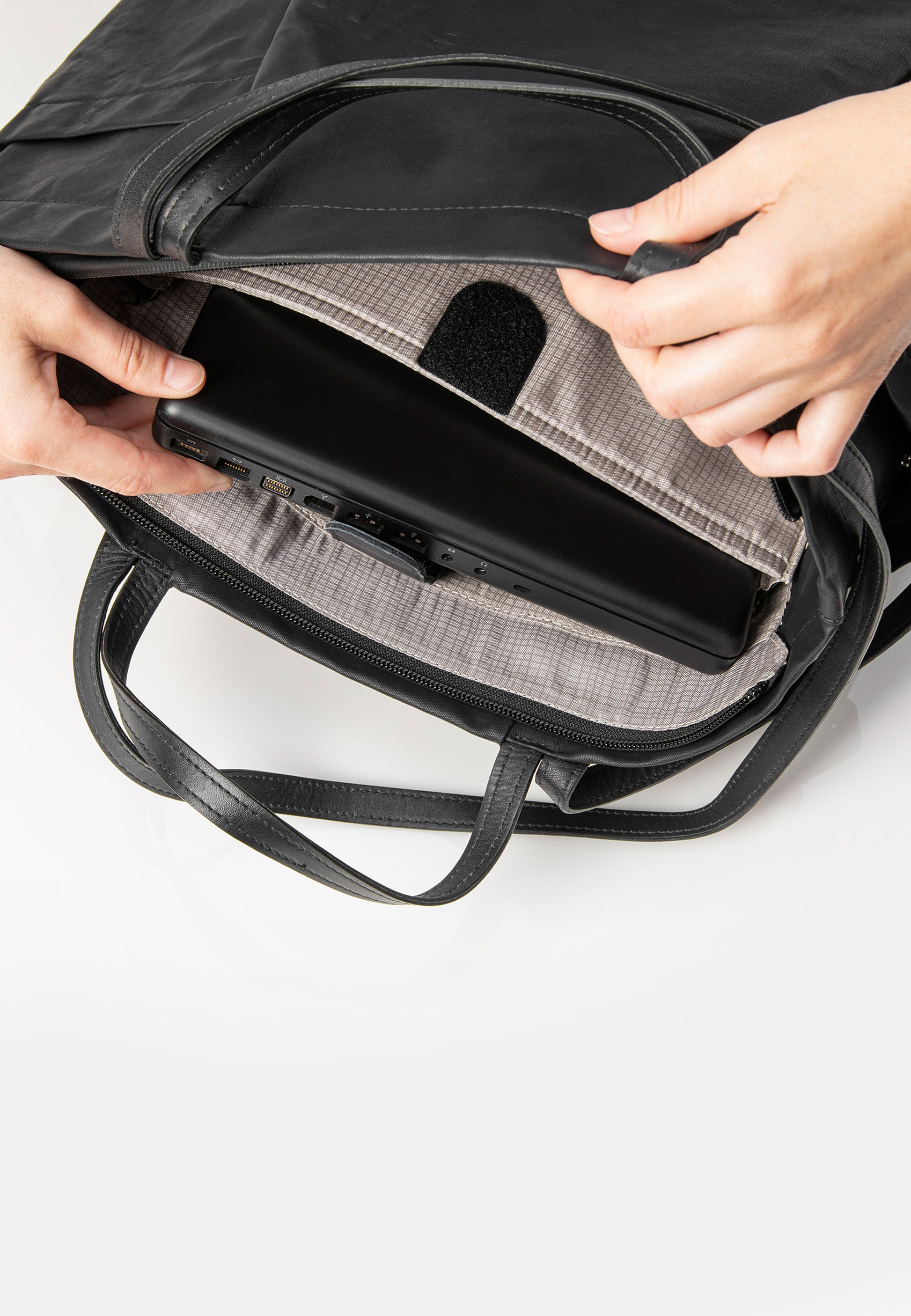 De korta handtagen ligger bekvämt i handen, medan de långa axelremmarna gör att väskan kan bäras avslappnat över axeln. De är dessutom korsfästa för att hålla stadigt på plats – även när väskan är full – utan att glida eller behöva justeras.
