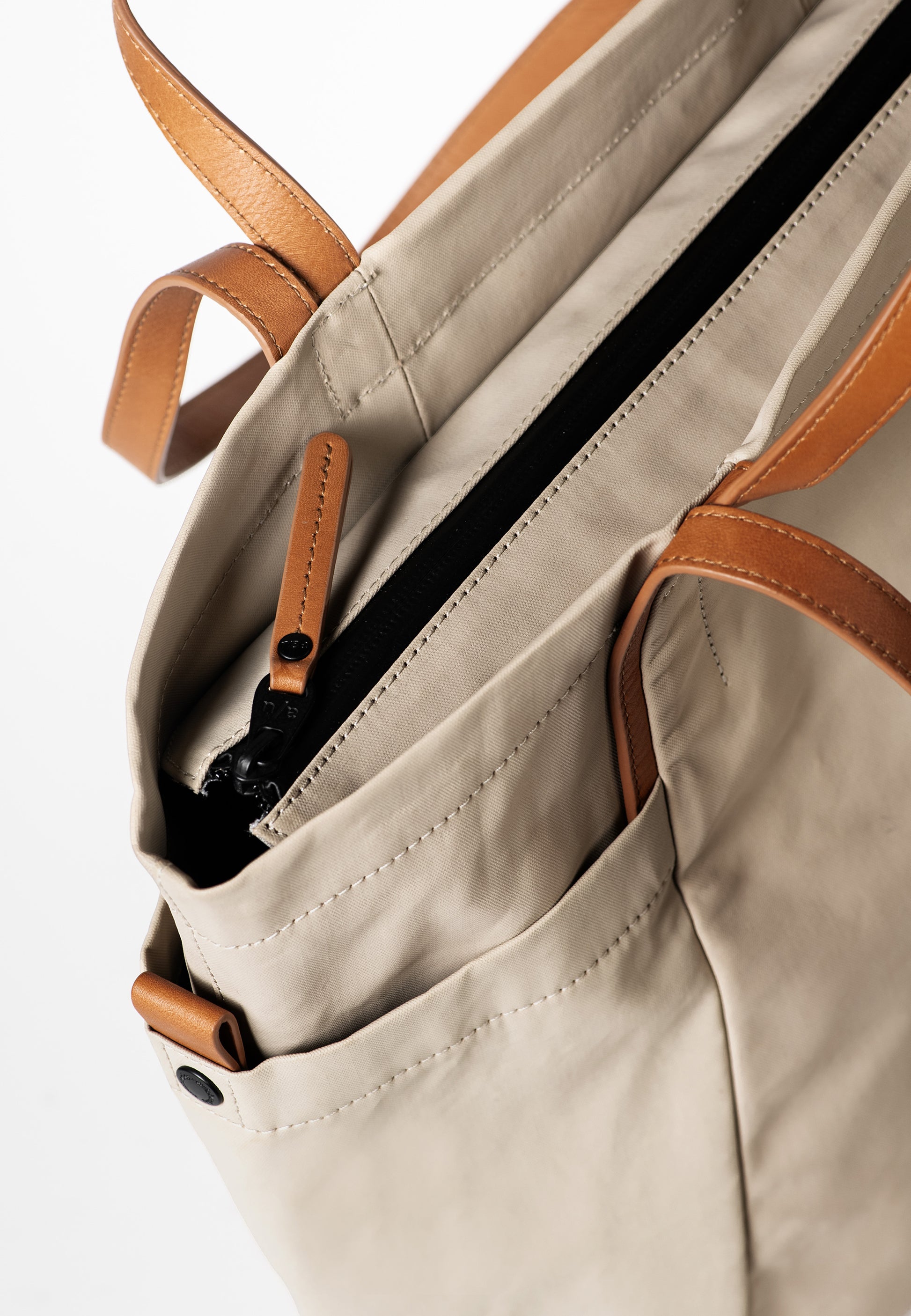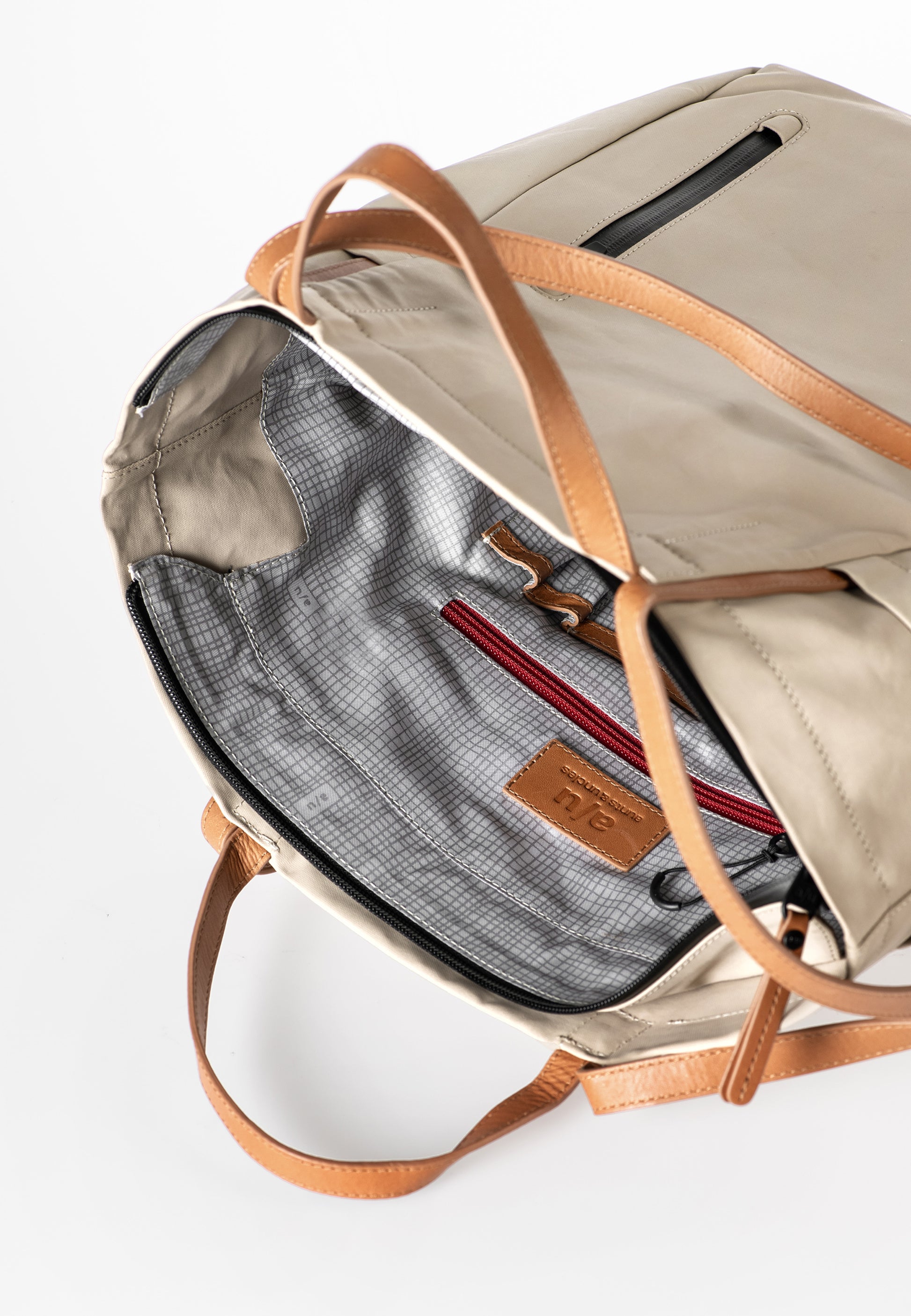 Tillverkad av vattenavvisande, belagd canvas ur Japan-kollektionen, klarar Takamatsu dagens alla utmaningar med stil. Väskan har en smart organiserad insida, en avtagbar innerficka och två stora sidofickor – perfekta för vattenflaska eller paraply. På baksidan finns dessutom ett praktiskt dragkedjefack.