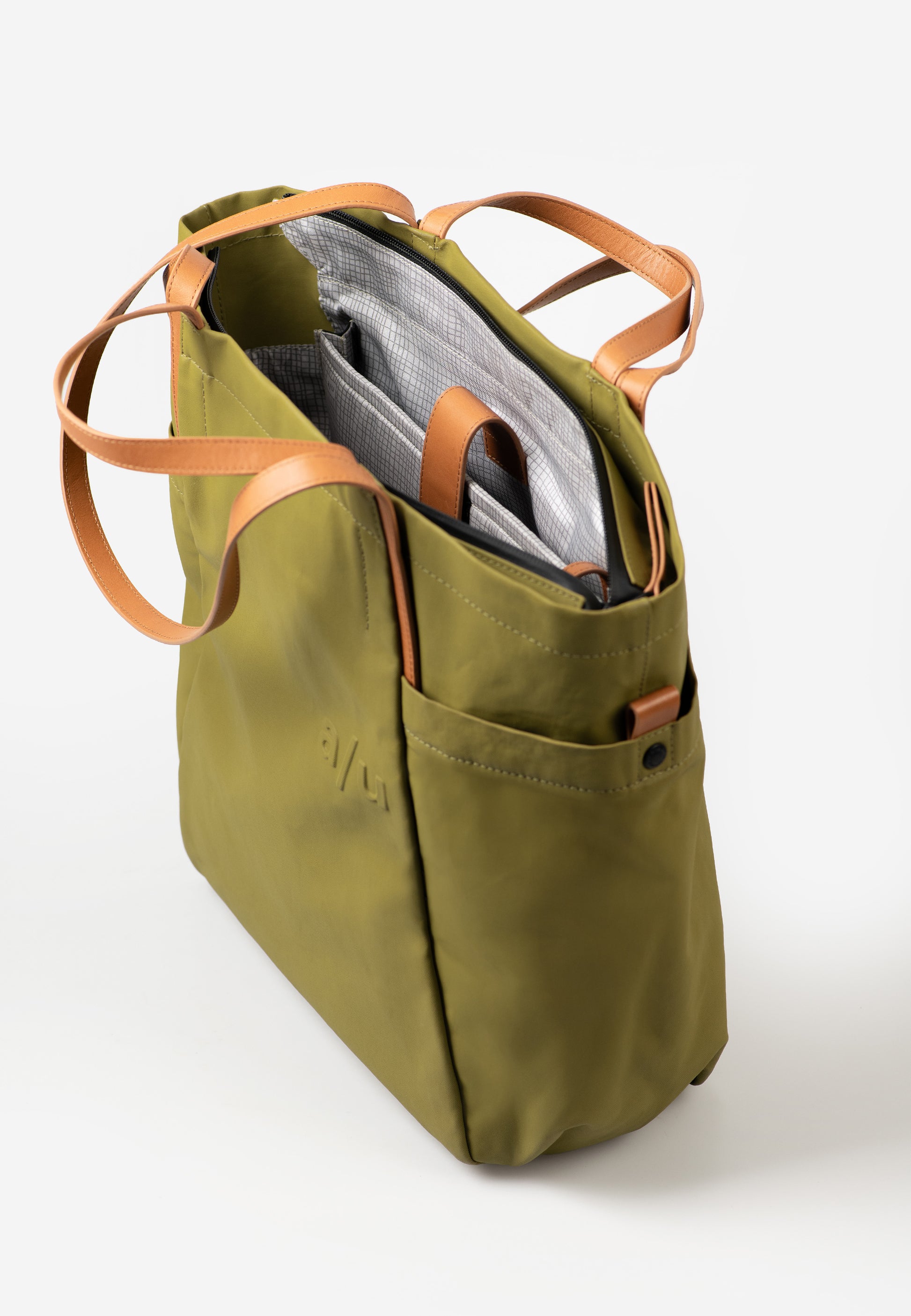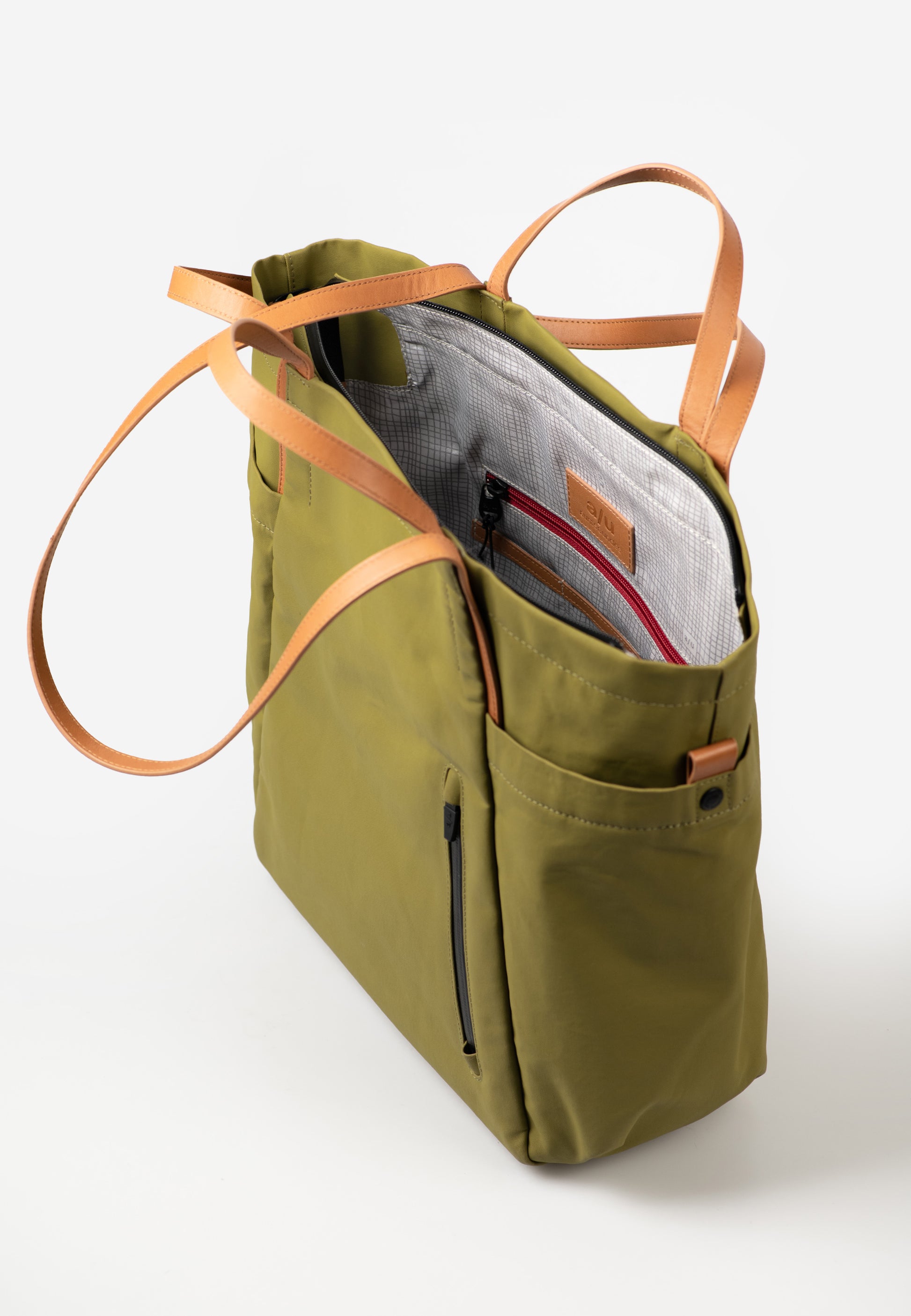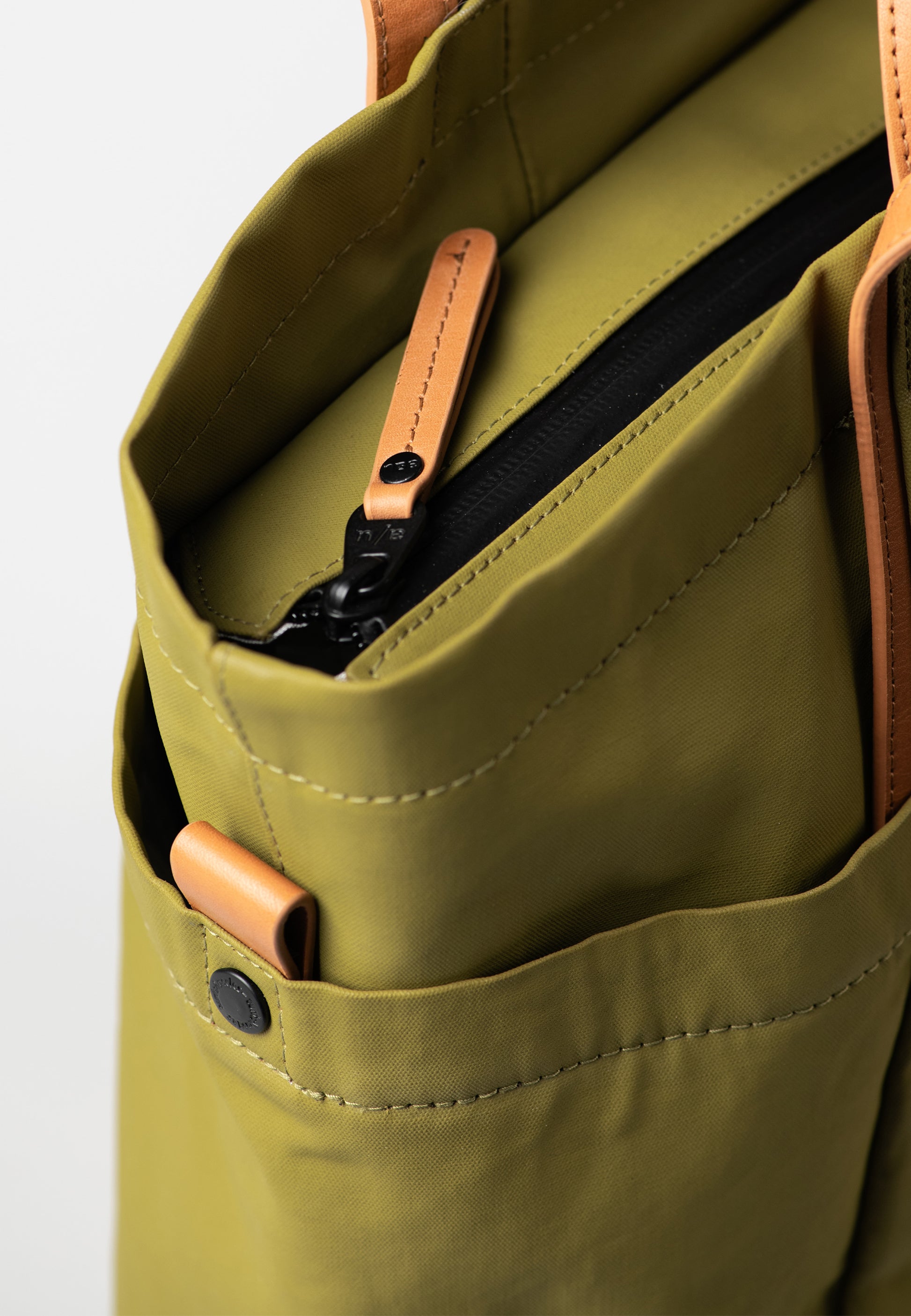 Tillverkad av vattenavvisande, belagd canvas ur Japan-kollektionen, klarar Takamatsu dagens alla utmaningar med stil. Väskan har en smart organiserad insida, en avtagbar innerficka och två stora sidofickor – perfekta för vattenflaska eller paraply. På baksidan finns dessutom ett praktiskt dragkedjefack.